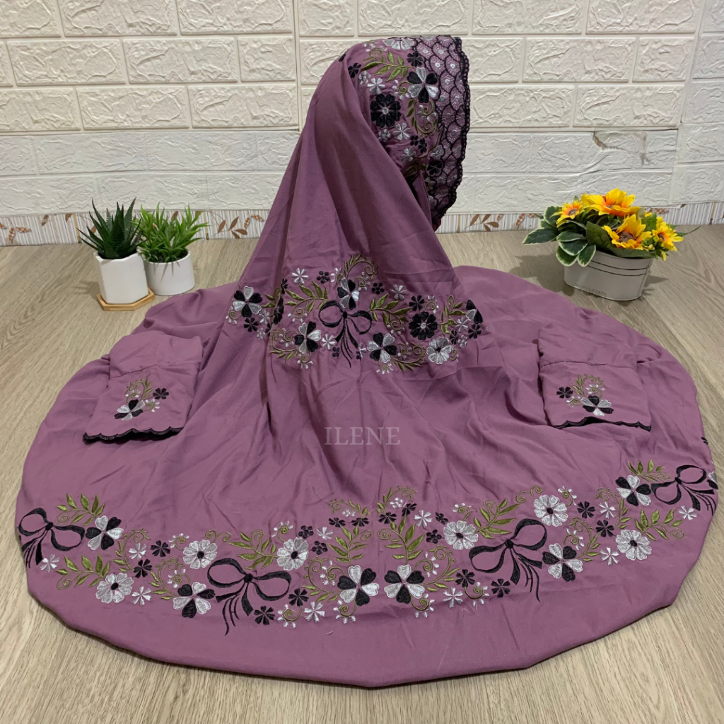 Mukena Terusan Warna Ungu Bordir Wanita Terbaru Bahan Katun Adem