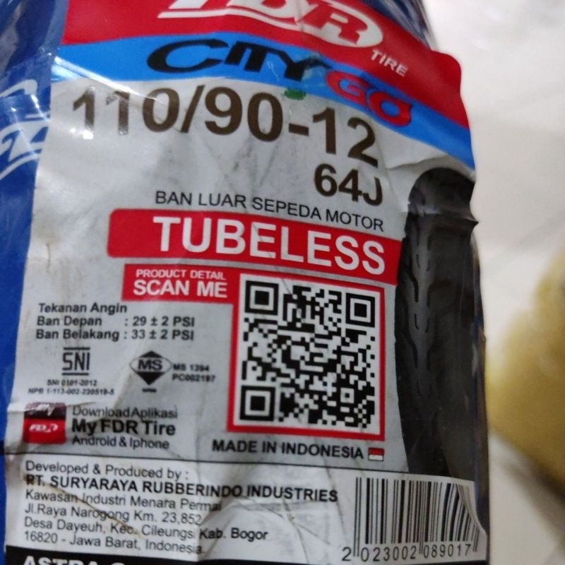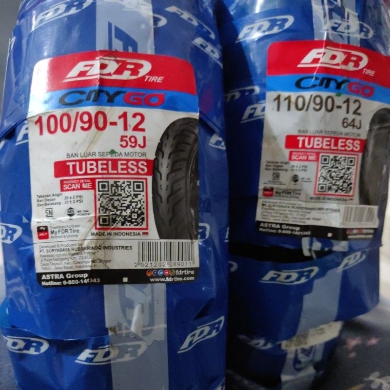 BAN LUAR TUBLESS 100/90-12, 110/90-12 SCOPY INJEK ( CITY G0 ) FDR