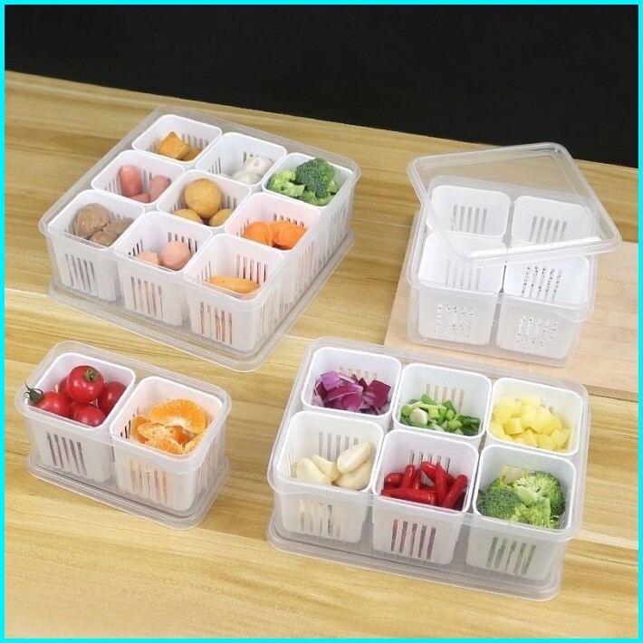 Sbn78 Kotak Saringan Wadah Cabai Bawang Jahe Buah Sayuran Dengan Saringan 6in1 9in1 Wadah Kotak Penyimpanan Bumbu Dapur