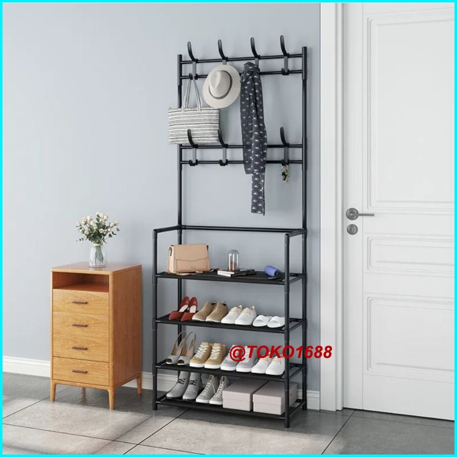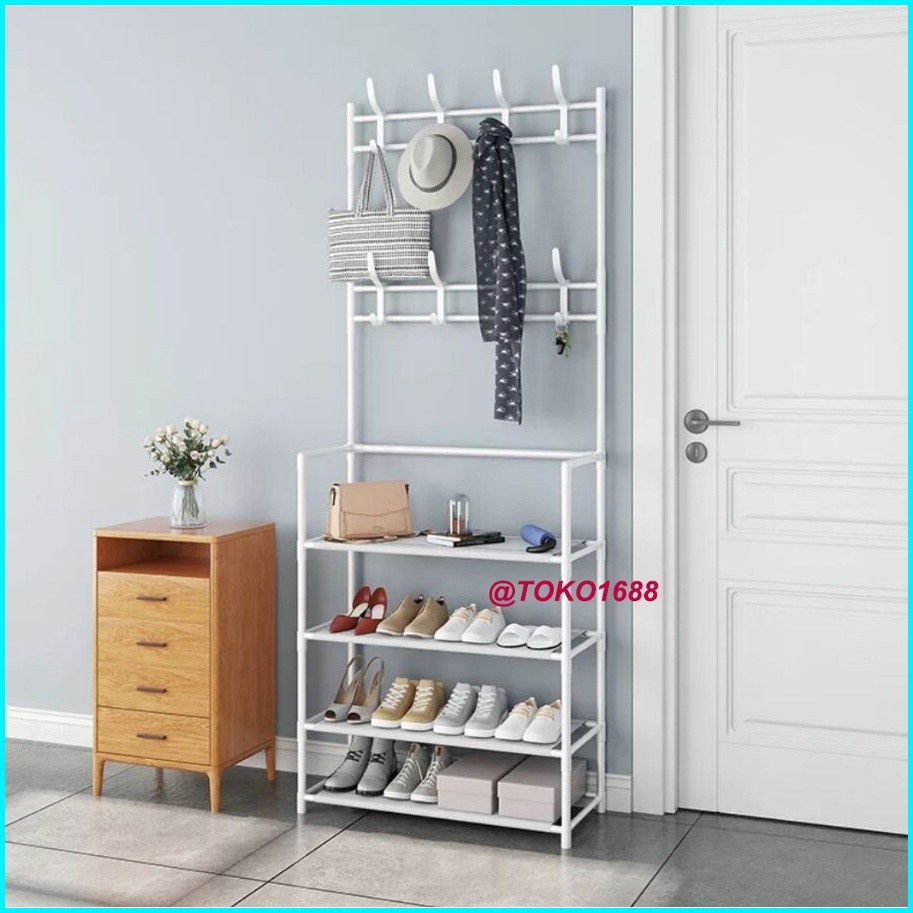 Rak Sepatu Portable Stand Hanger Rak Gantungan Baju Tempat Topi Hanger Tas Rak Penyimpanan Susun
