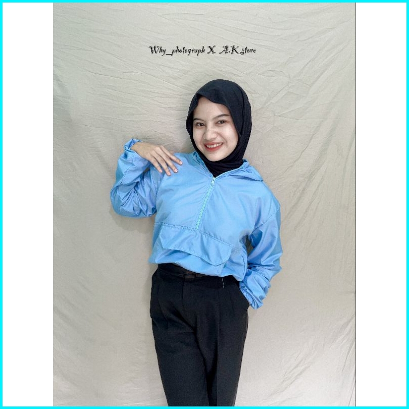 Pakaian Olahraga Jaket Olahraga Wanita Jaket Crop Wanita Saku Bahan Parasut Modis