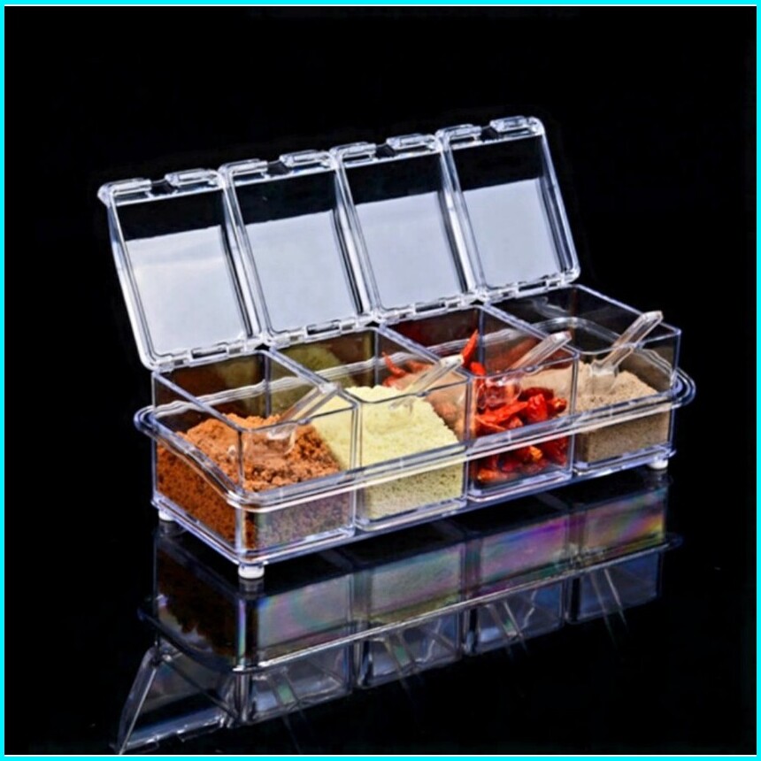 Tempat Bumbu Dapur Set Kotak Wadah Aneka 4 Pcs Transparan Tb002