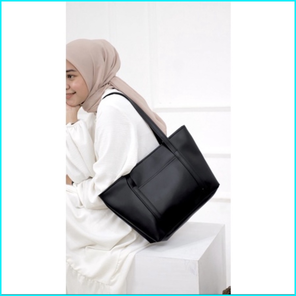 Tas Tote Bag Wanita Kulit - Totebag Kulit Saku Depan - Tas Wanita - Tas Wanita Kekinian 2023 - Tas Pengajian - Tas Bahu