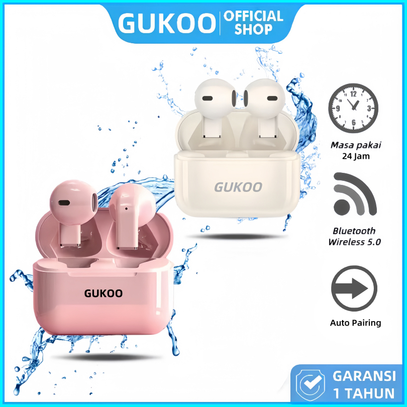Gukoo Headset Tws Bluetooth 5.3 - Earbuds Nirkabel Hd Baterai 24 Jam Desain Nyaman Tahan Air Ipx5