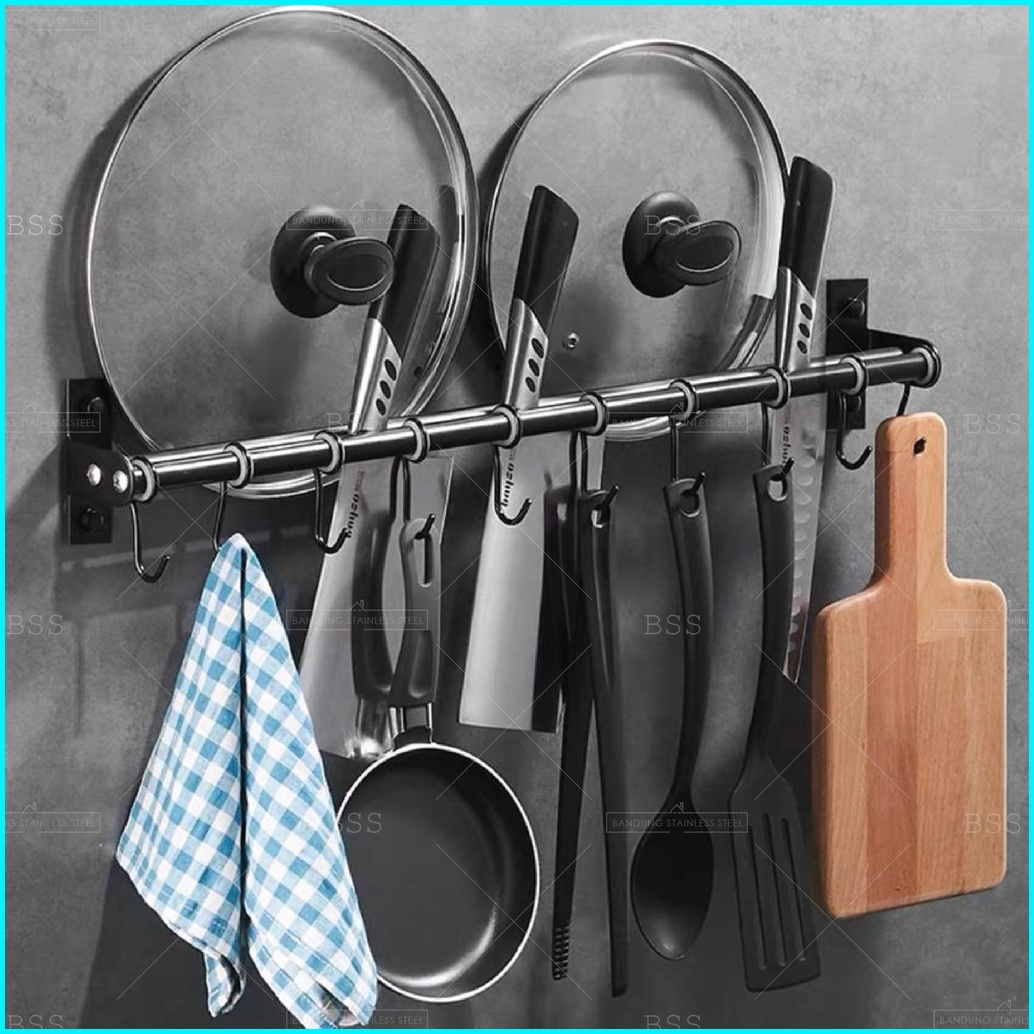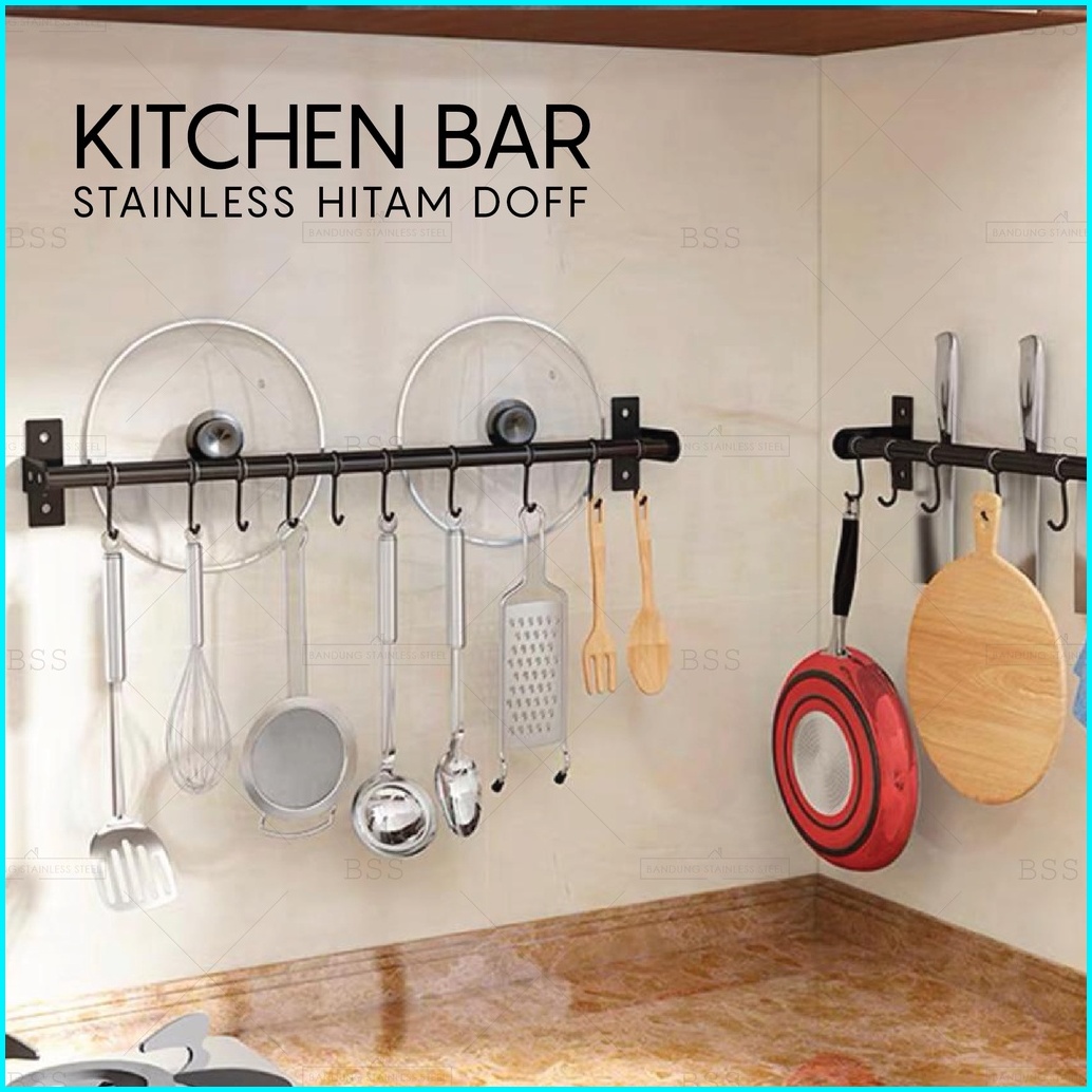 Kitchen Bar Hitam Doff 60cm 80cm 100cm Single Double Gantungan Rak Dapur Pisau Panci Stainless