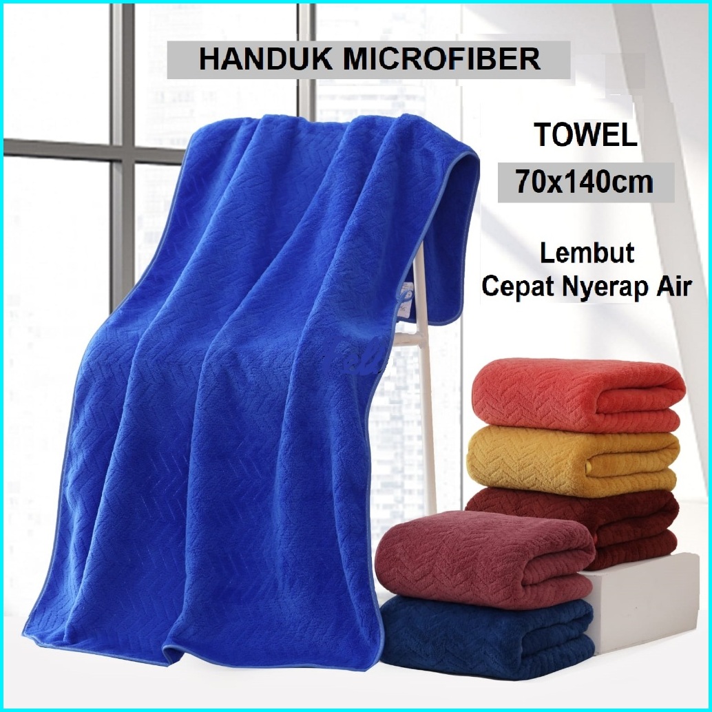 Handuk Mandi Dewasa Microfiber 70x140 Handuk Pria Wanita Lembut Tebal Menyerap Air