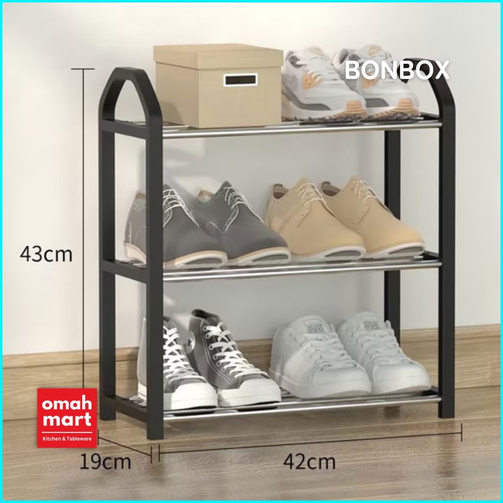 Bonbox Rak Sepatu Sandal Kecil Mini Minimalis Shoe Rack 3 Susun Besi Plastik