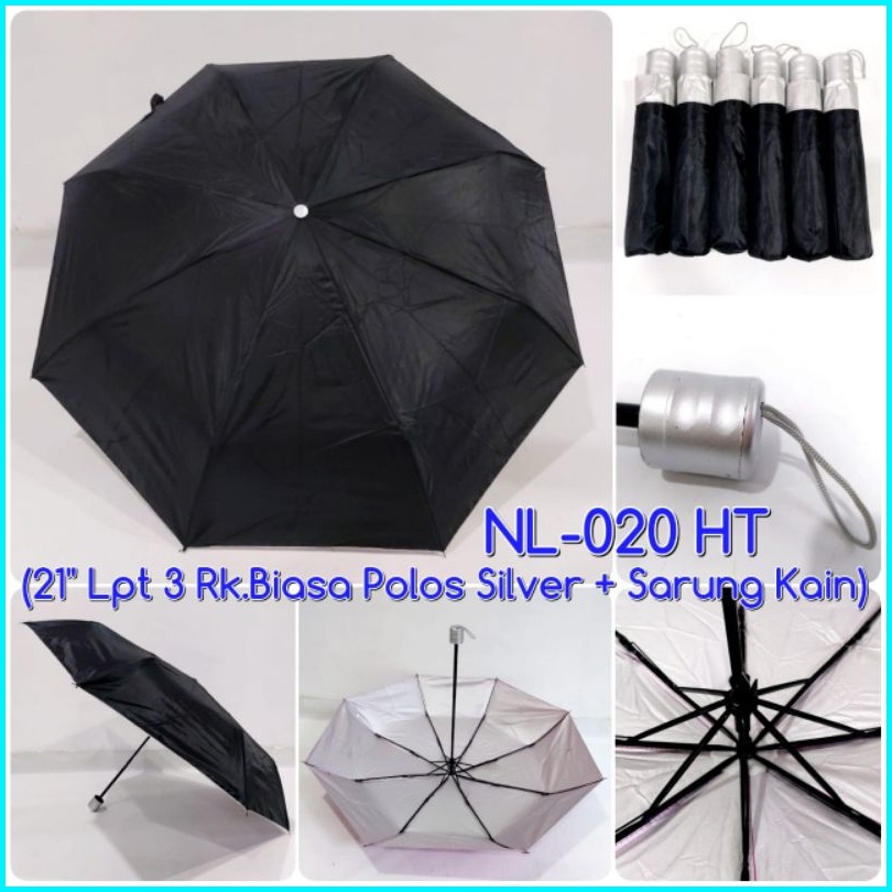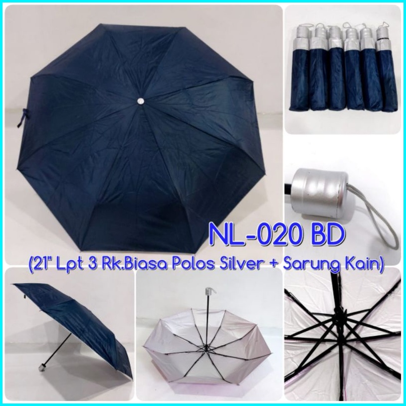 Kiranaabadi Payung Lipat 3 Polos Uv Dalam Silver Rangka Biasa Sarung Kain Cocok Untuk Promosi