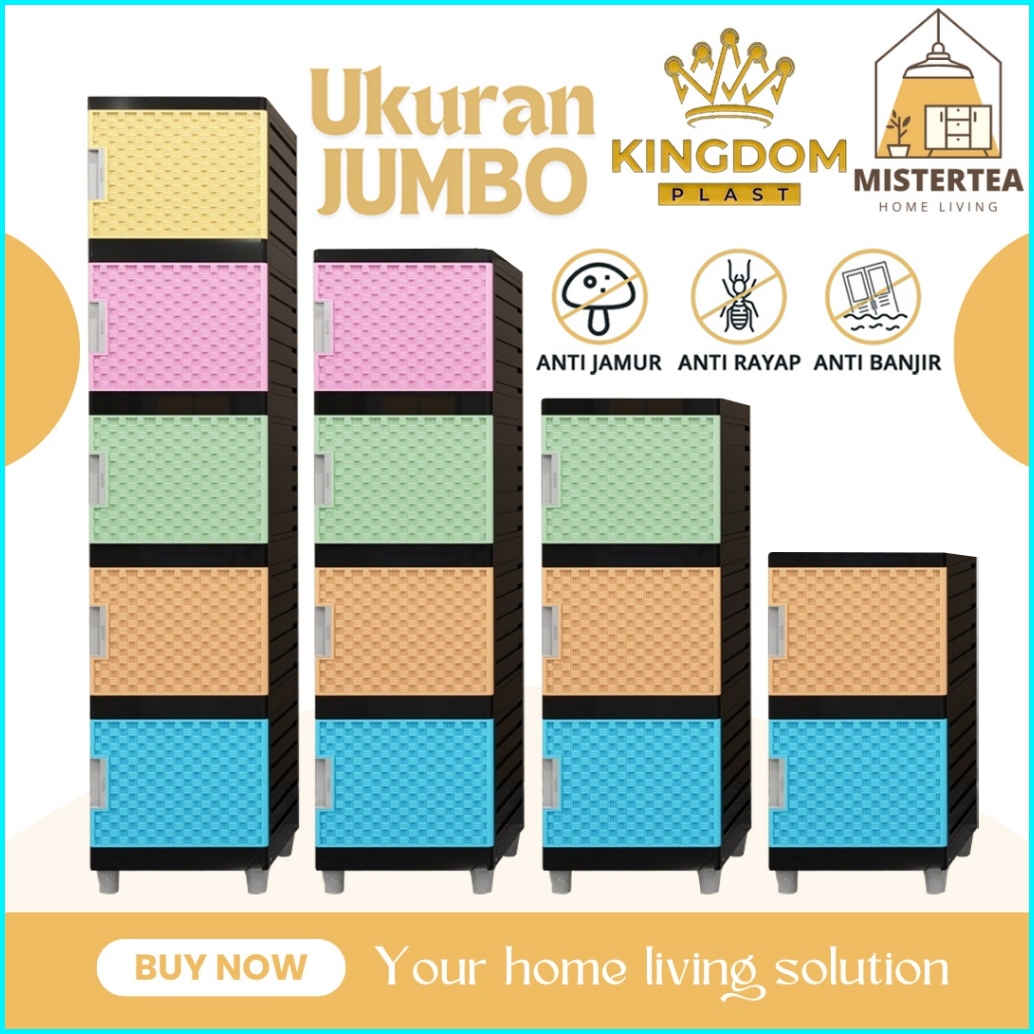Ready Stock Kingdom Plast Lemari Rak Susun Baju Pakaian Plastik Rotan Serbaguna 2 3 4 5 Susun Slap Zebra Aurora