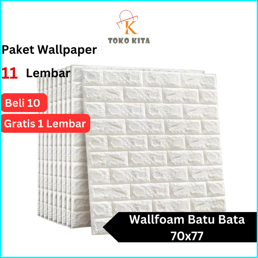 Paket 10 Lembar Gratis 1 Lembar Wallpaper Dinding 3d Foam Motif Bata Dekorasi Dinding Kamar Ukuran 70 X 77cm