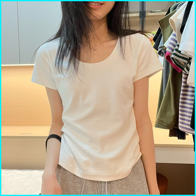 Kaos Leher Awak Slim Fit Berbahan Katun Murni Baju Kaos Korea Wanita Kaos Modis Dan Serbaguna Kaos Ceop Top Wanita