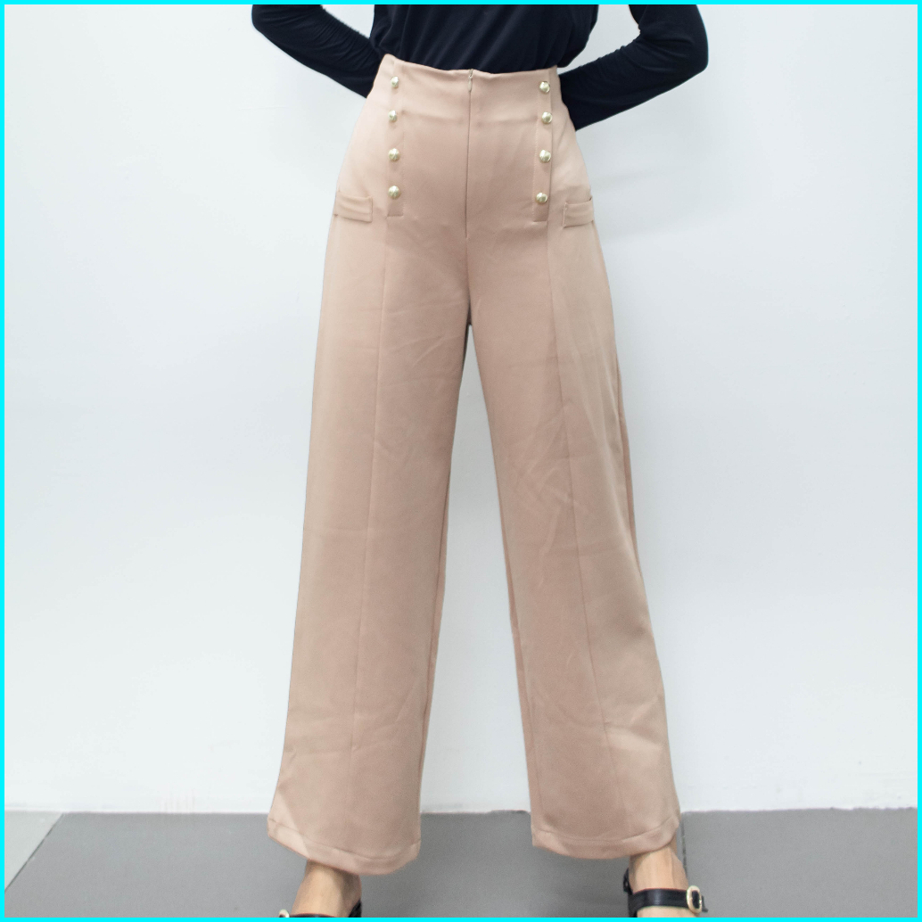 Yoona Celana Kulot Highwaist Wanita Kancing Highwaist Long Pants Button