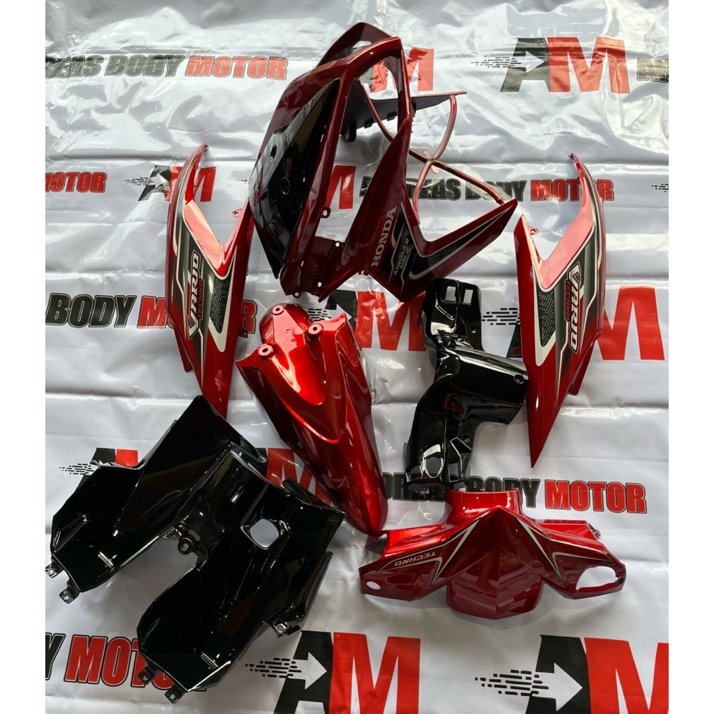 Honda Vario 110 tecno cbs karbu Cover full body kasar halus merah plus striping