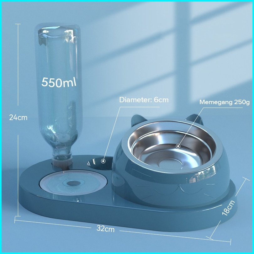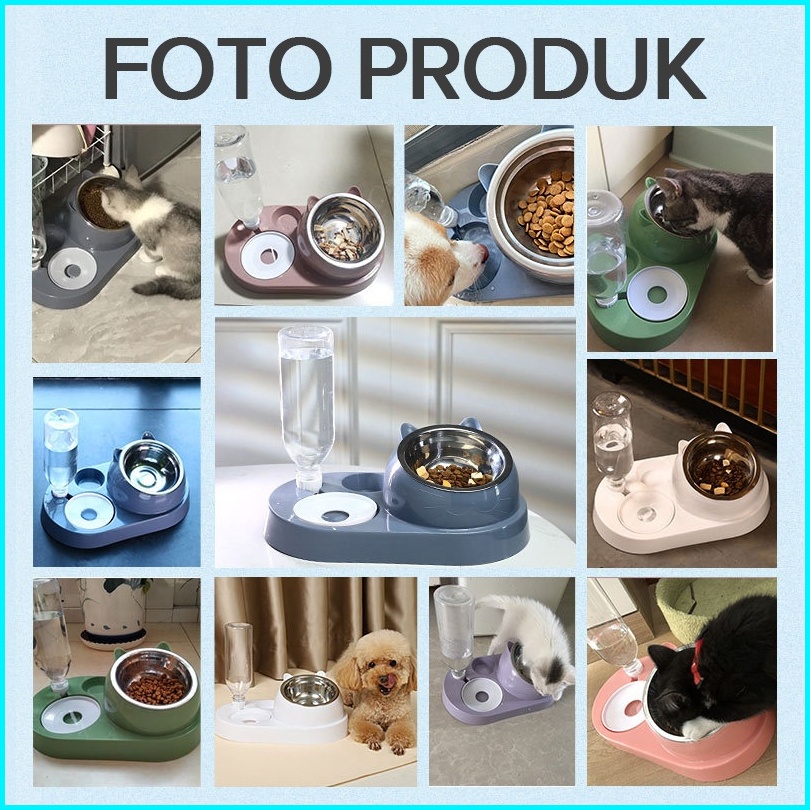 Dispenser Minuman Kucing Otomatis Pet Feeder 2 In 1 Auto Feeder Dispenser Makan Minum Anjing Kucing Kelinci Mangkuk Stai