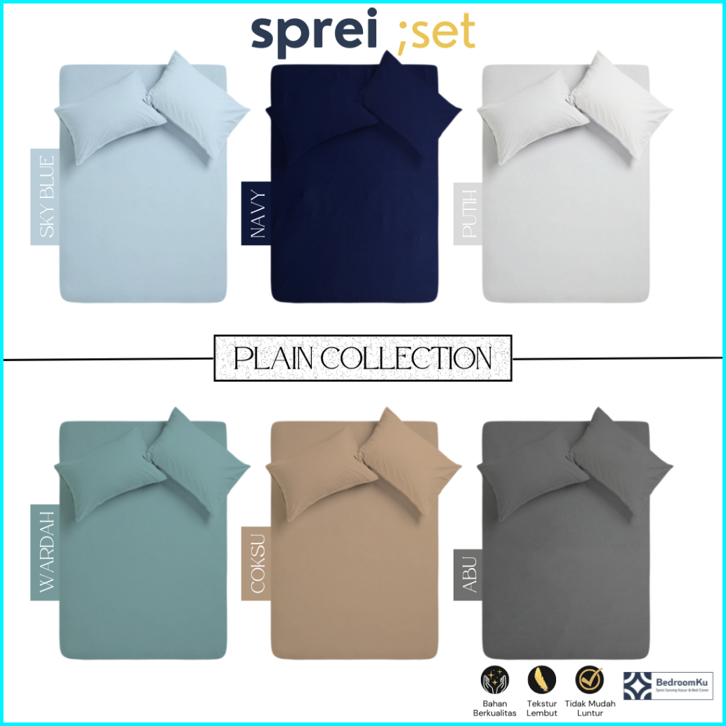 Sprei Set Polos Aesthetic 90x200 100x200 120x20 140x200 160x200 180x200 Tinggi 15 20 Double Plain Estetik Sudut Karet