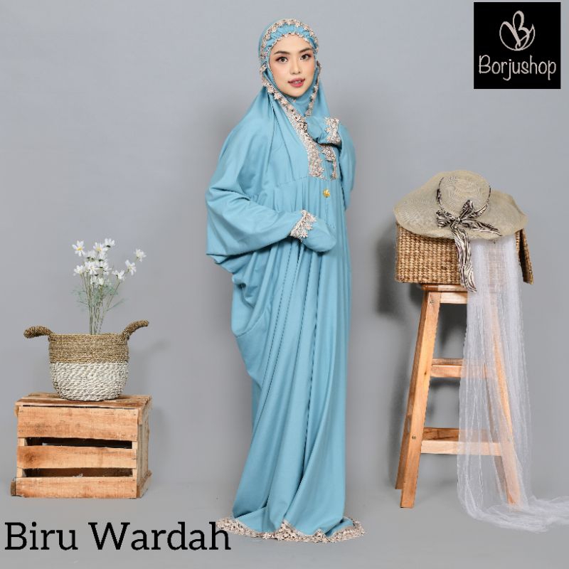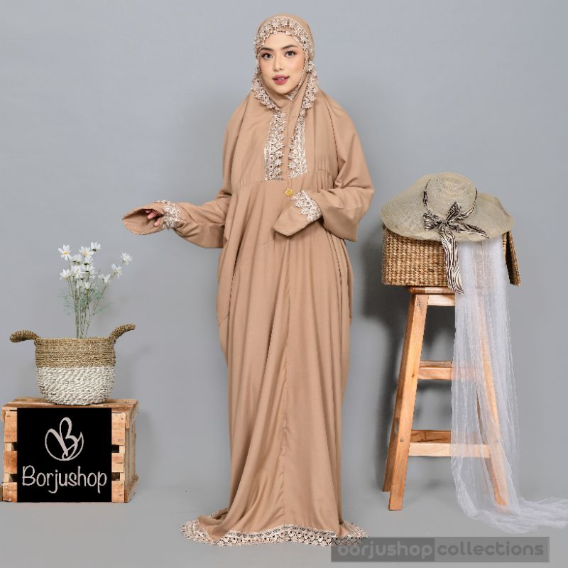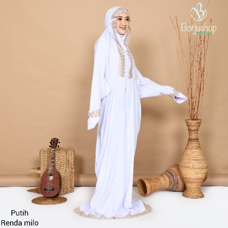 BORJUSHOP Mukena Terusan Dewasa Katun Polos Renda Bintang Krisdayanti Mukenah Terusan Putih
