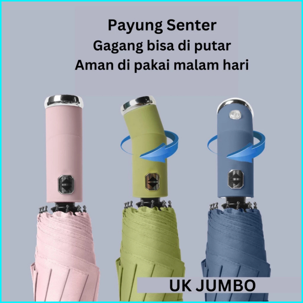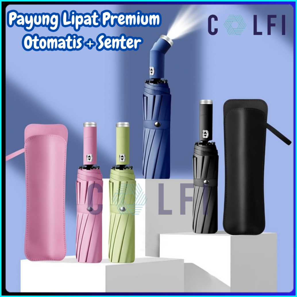 Colfi Payung Lipat Otomatis Jumbo Senter Buka Tutup Anti Uv - Payung Lipat Senter Led Premium Camping Anti Panas Anti Ba