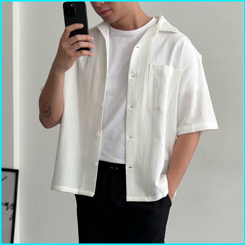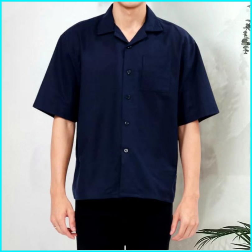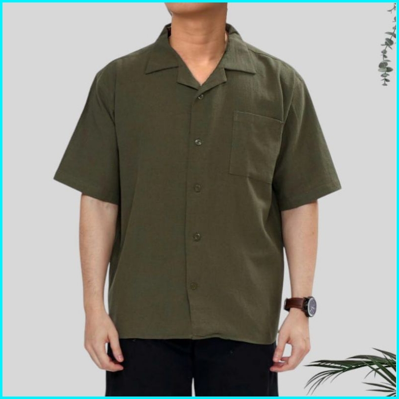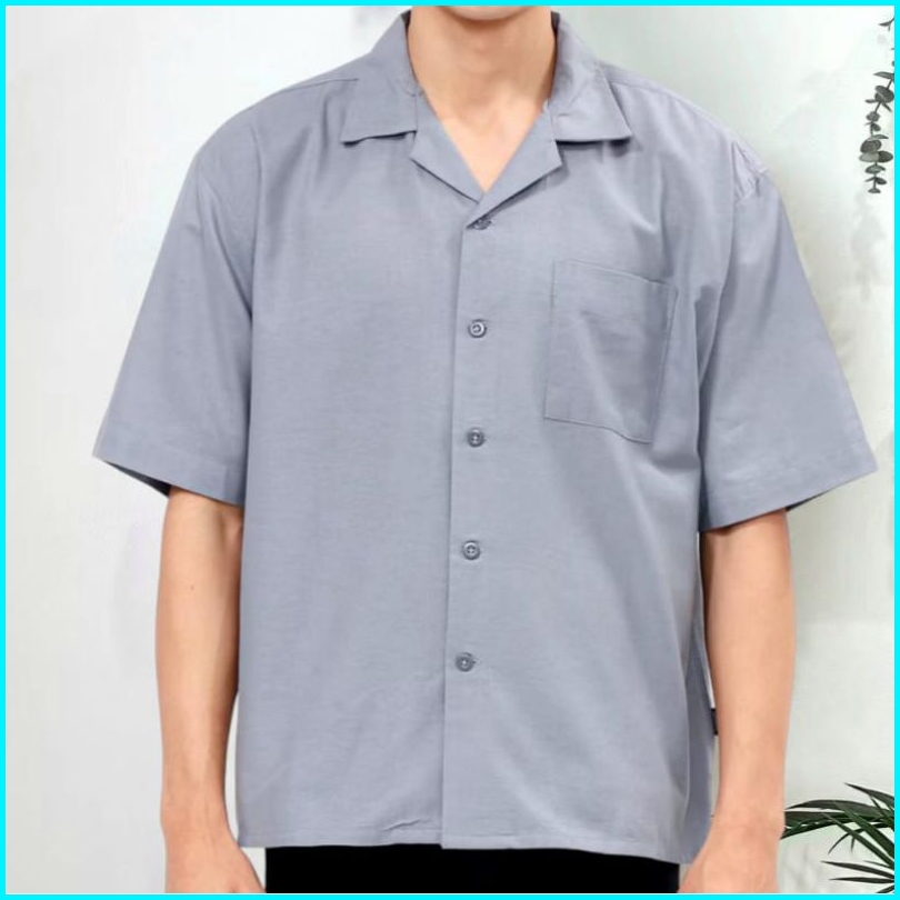 Reinaclub Cuban Bowling Boxy Oversized Linen Shirt Kemeja Linen Bowling Polos Pria Kerah Terbuka Lengan Pendek 81