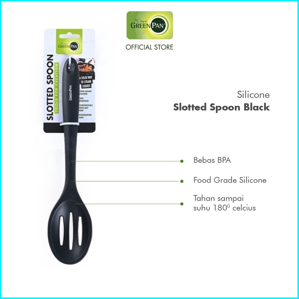 Greenpan Silicone Slotted Spoon Black Sutil Bpa-free
