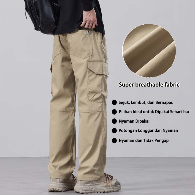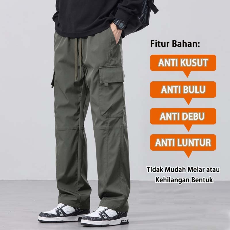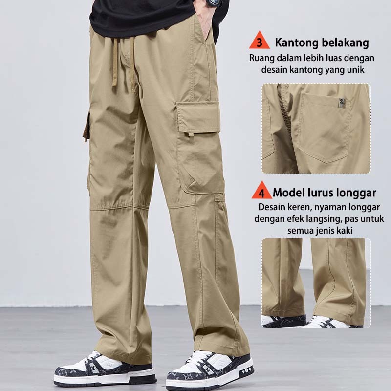 SUYX Celana Cargo Panjang Pria Loose Pants Gombrang Outdoor Celana Cargo Korean Style Celana Pria