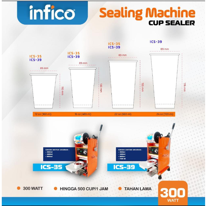 MESIN PRESS SEAL CUP MANUAL KAPASITAS TINGGI 500 CUP PER JAM INFICO 12 Oz- 24 PLASTIC CUP SEALER