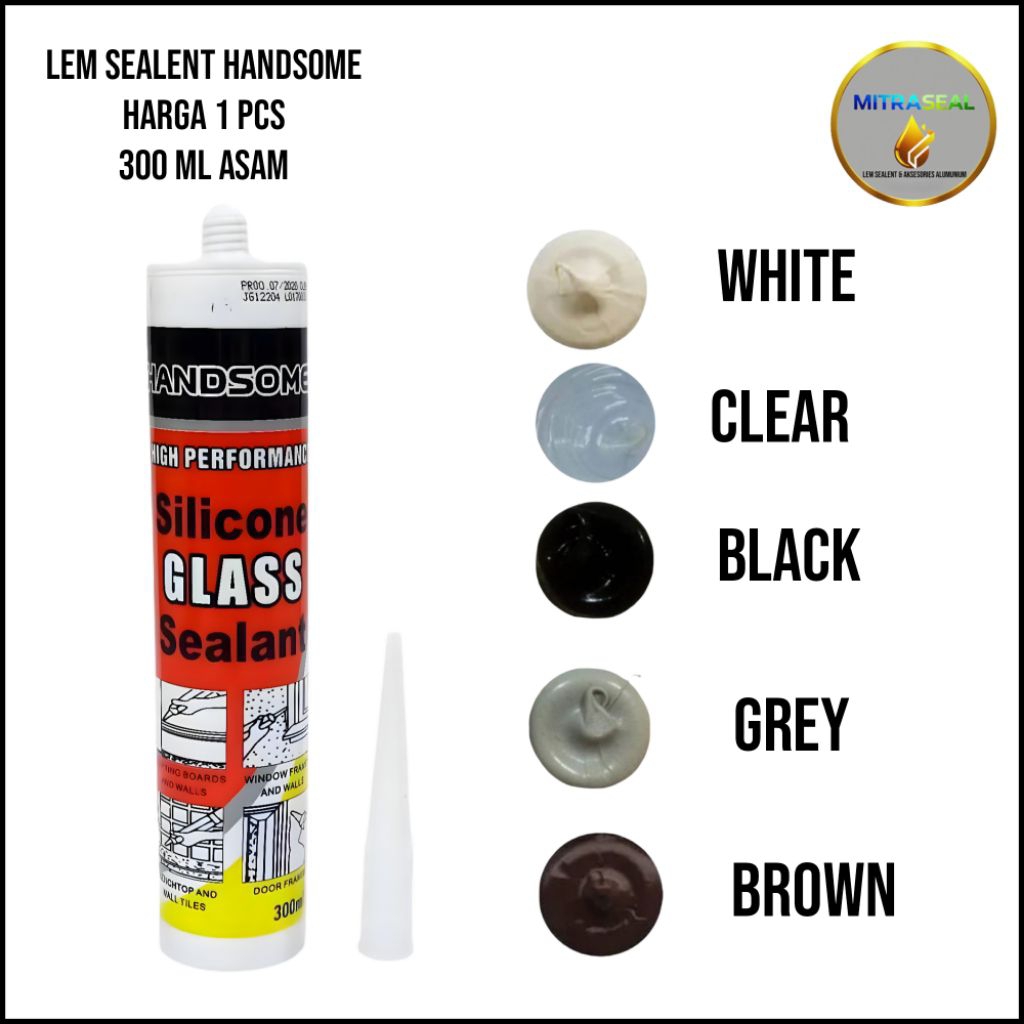 Handsome Lem Kaca Lem PVC Lem Sealent Asam 300 ml Harga 1 Pcs
