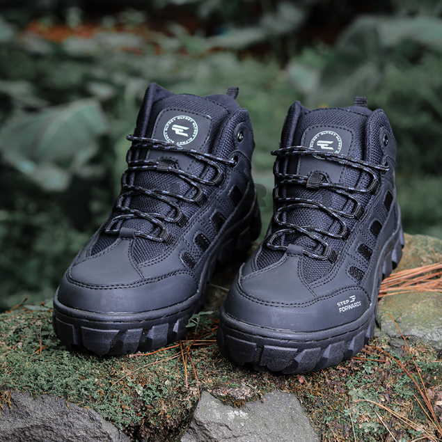 Oltrey Sepatu Pria Safety Boots High Kerja Proyek Hiking Touring Outdoor Ujung Besi Harpy Hitam