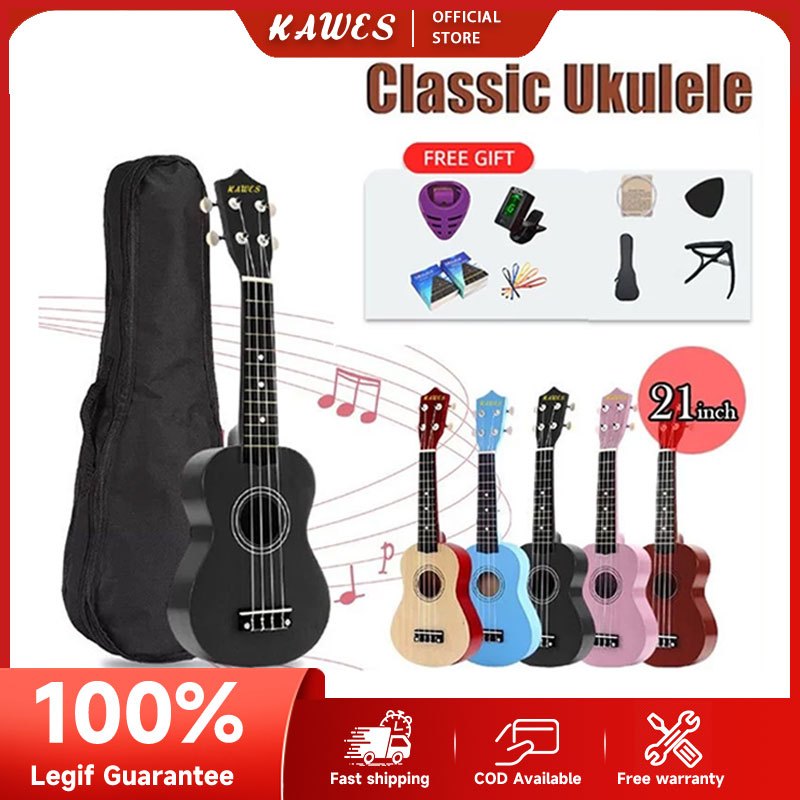 KAWES Gitar kecil Paket Gitar Ukulele Soprano 4 Senar Spruce Basswood 21 Inci Set tas dan aksesoris tuner gratis