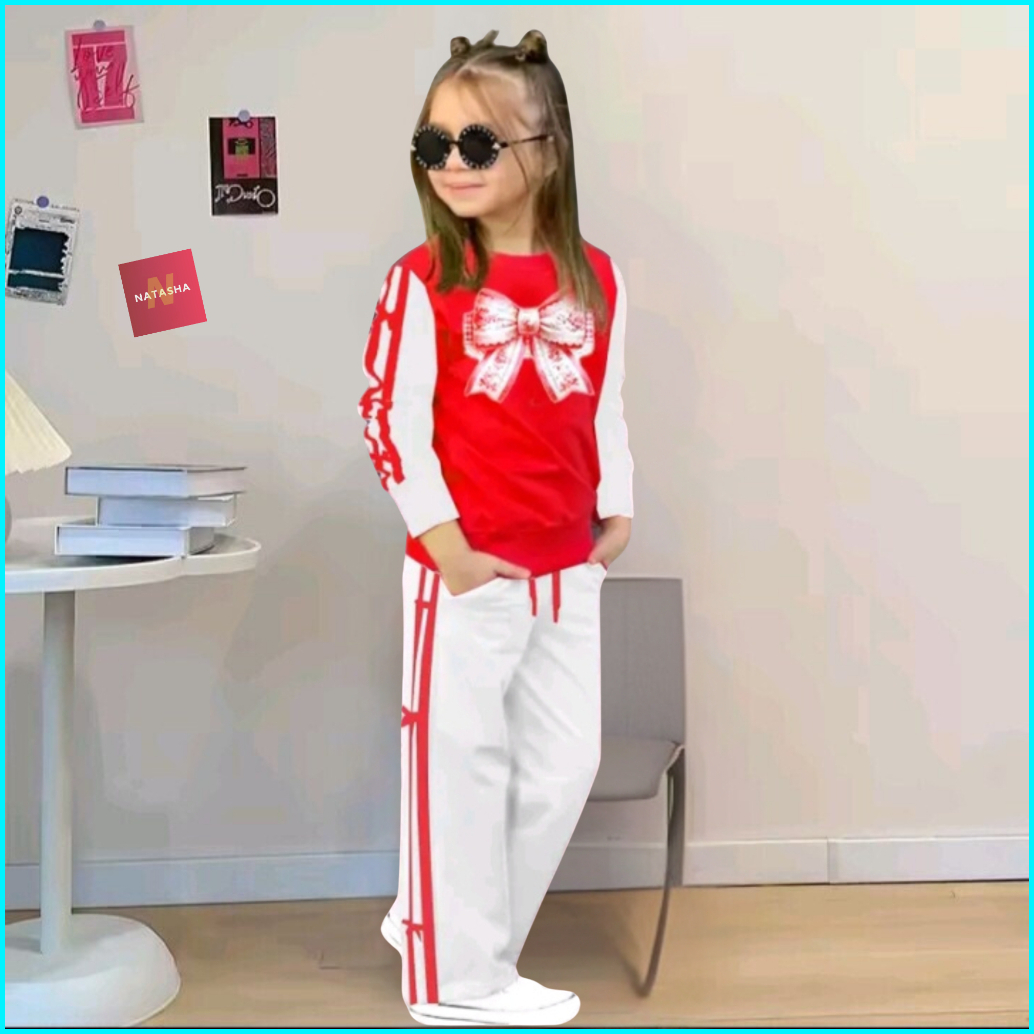Baju Anak Perempuan Streetwear Setelan Merah Putih Motif Pita Untuk Usia 1-12 Tahun