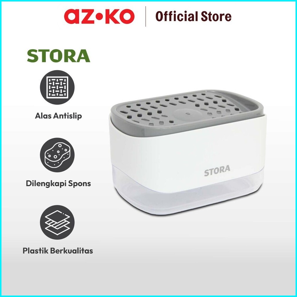 Azko Stora Dispenser Sabun Cuci Piring Dengan Tempat Spons - Putih Wadah Penyimpanan Spons Dan Sabun Dish Spons With Dis