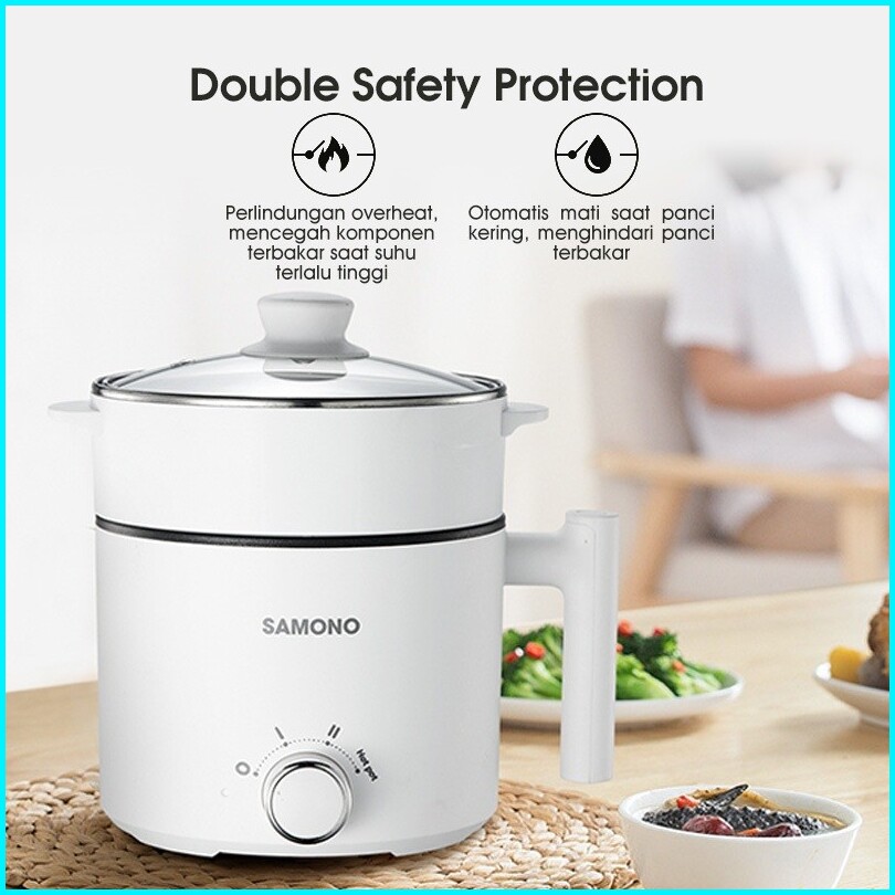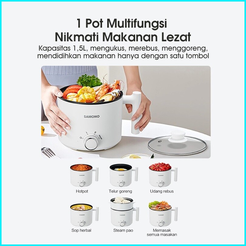 Samono Panci Listrik Hotpot Multi Cooker 1 5l Dengan Kukusan Tutup Kaca 150 Watt Sw-dg04s