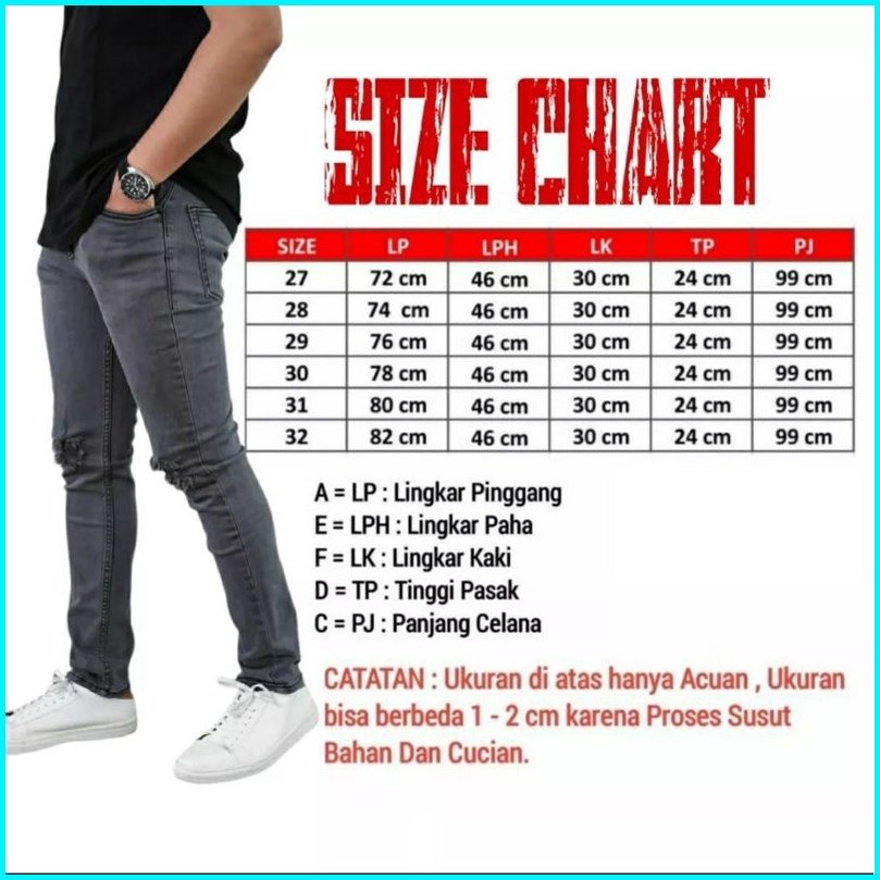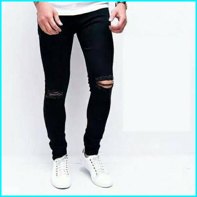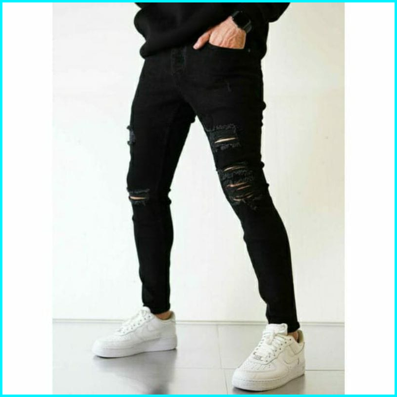 Celana Jeans Pria Sobek Ripped Robek Slimfit Pensil Stretch Hitam Premium 27-38