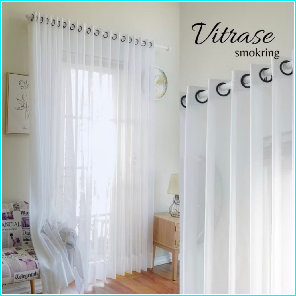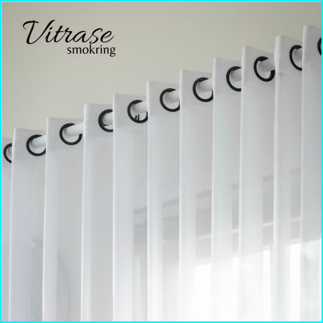 Gorden Vitrase Smokring 200 X 250cm Tinggi 3 Meter Hordeng Putih Polos Jendela Pintu Tirai Minimalis
