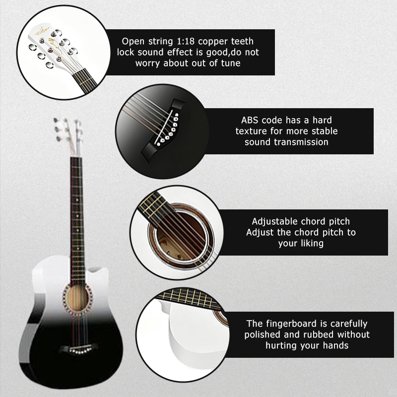 Paket Gitar Akustik 38 inci untuk Pemula Panel Basswood dengan Finishing Matte Gitar Akustik untuk Pemula