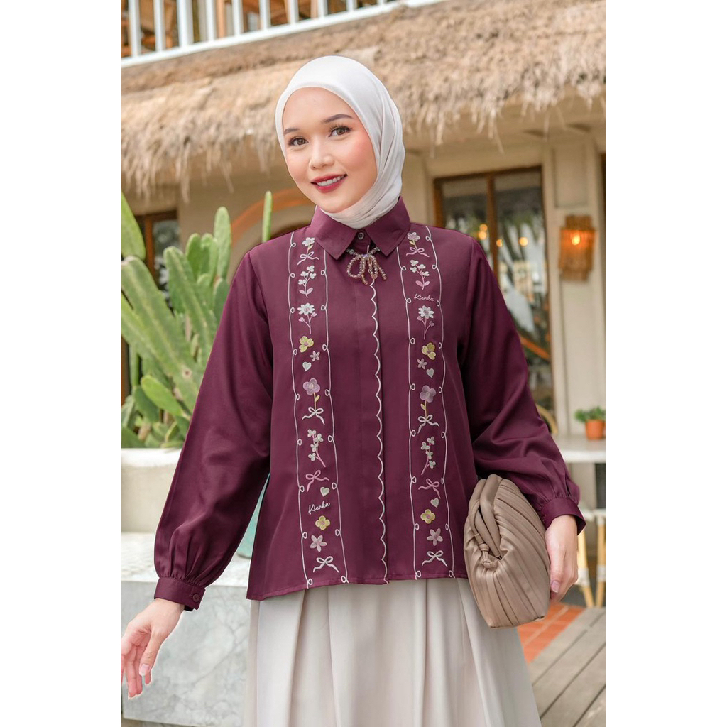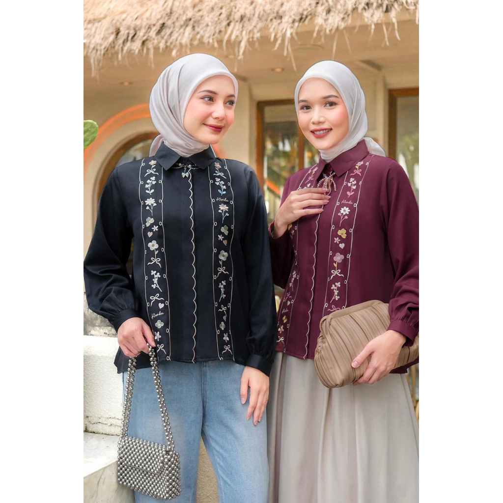 Kienka - Celia Embroidery Shirt Atasan Kantor Bordir Bunga Mix Pita