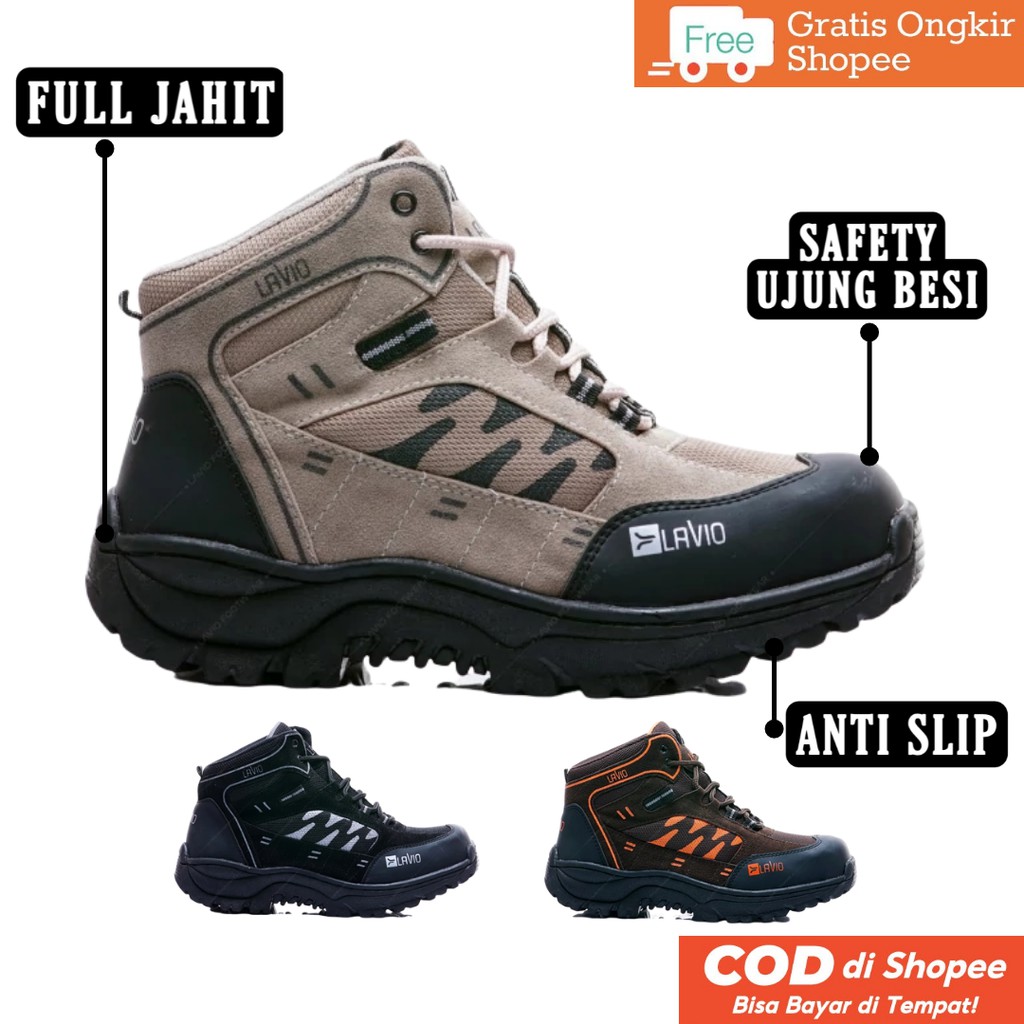 Sepatu Safety Outdoor Anti Slip Full Jahit Model Tinggi Ujung Besi Sepatu Gunung Axel