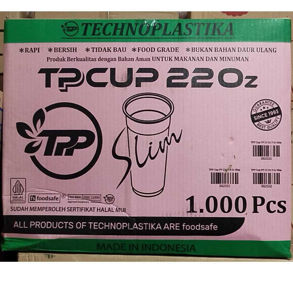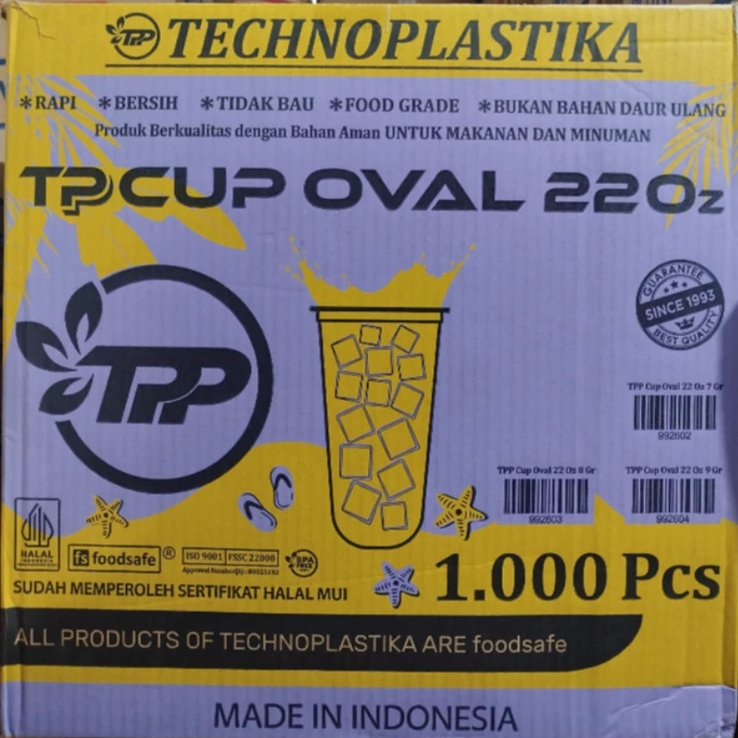(INSTANT / CARGO) 1 DUS GELAS TPP TECHNO CUP 18 22 OZ OVAL / SLIM DATAR ISI 1000 PCS