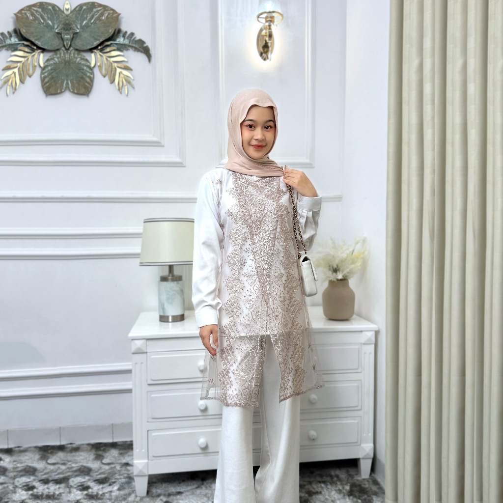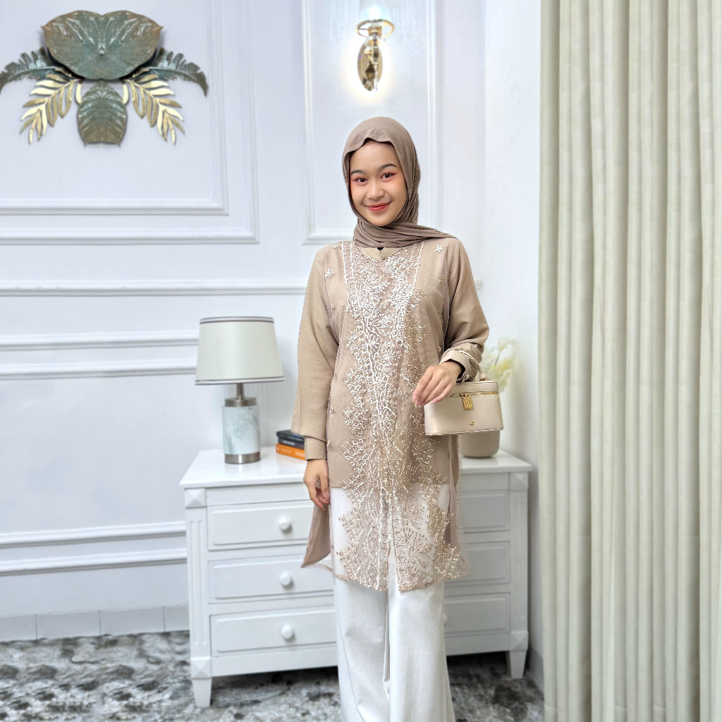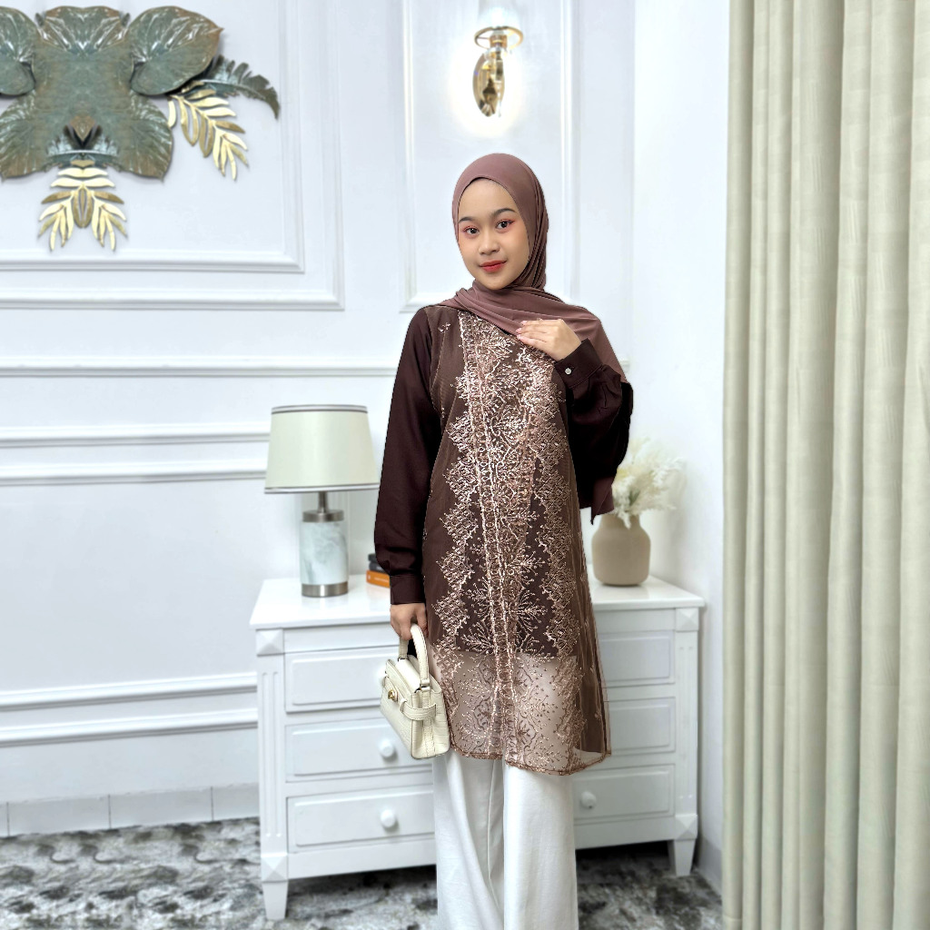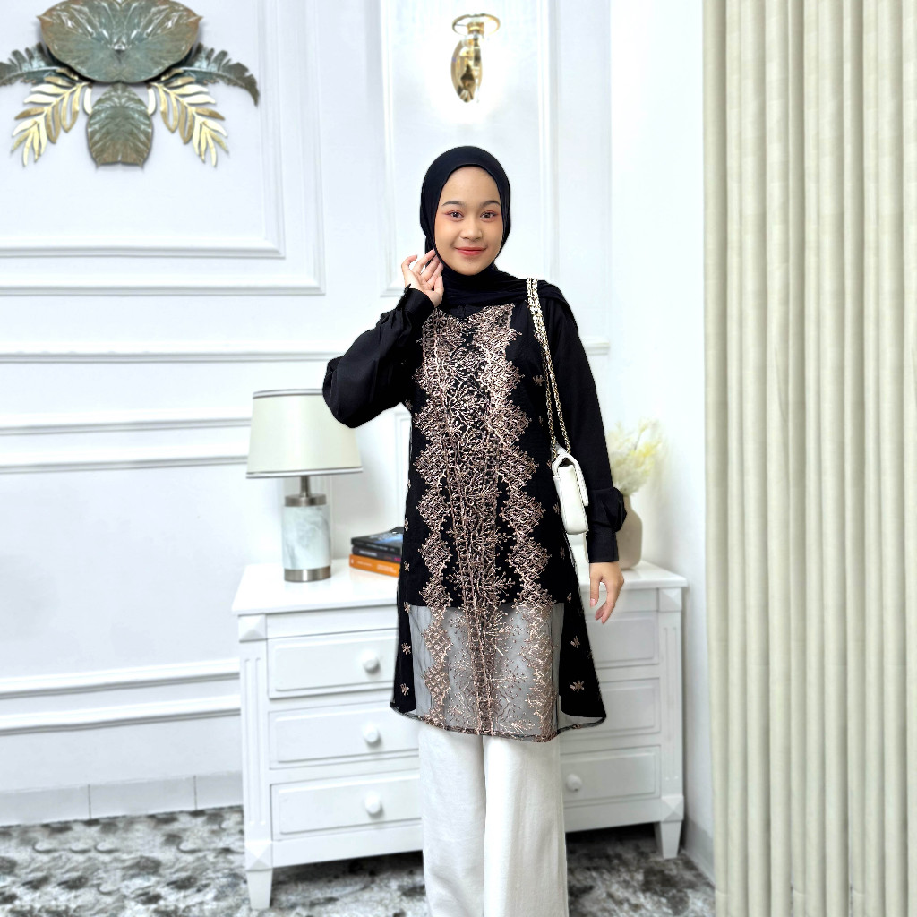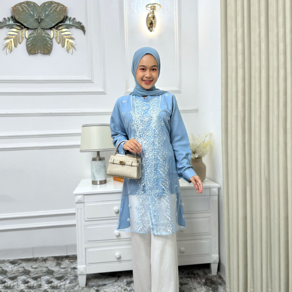 Shena Tunik Wanita Variasi Tile Bordir Bahan Shakilla