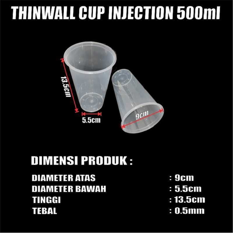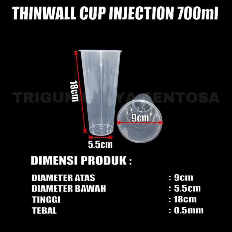 Thinwall Cup Injection Tebal 12oz 380ml / 14oz 400ml / 16oz 500ml / 24oz 700ml n Tutup Sambung Plastik Bening Dus Js Krm