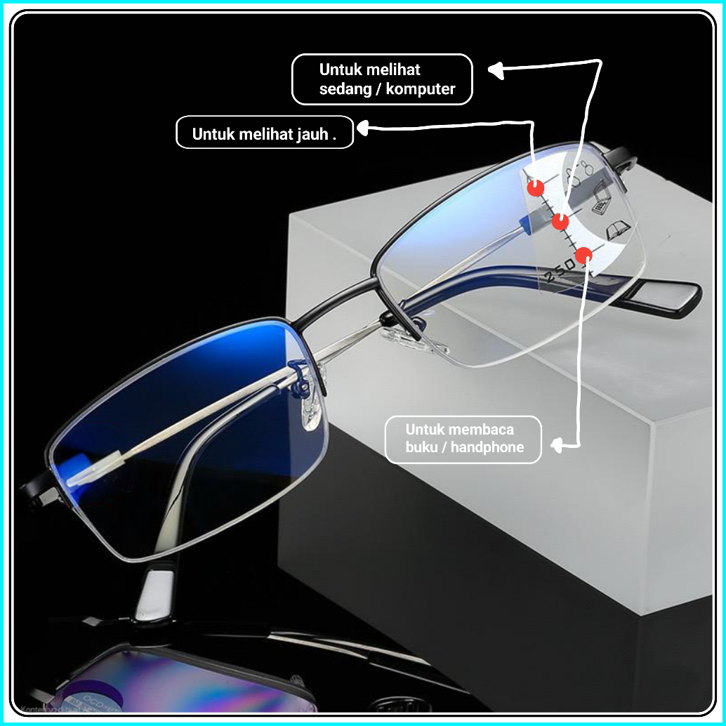 Kacamata Progresif Titanium Untuk Baca Dan Jalan Antiradiasi Blueray Hp Dan Komputer Tersedia Ukuran 1.00 Sampai 3.00 Bi