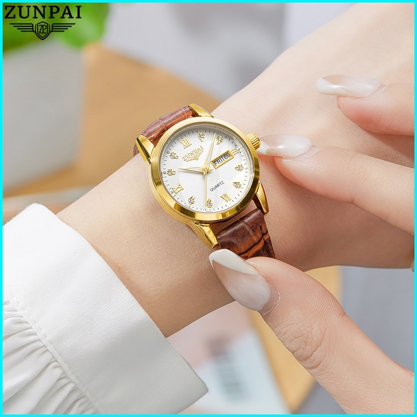 Zunpai Jam Tangan Wanita Kekinian Original Anti Air Impor Bermerek Cewek Elegan Mewah Tali Kulit Kuarsa Arloji Terbaru
