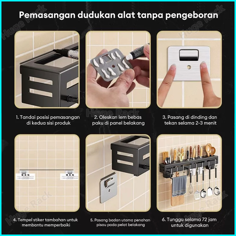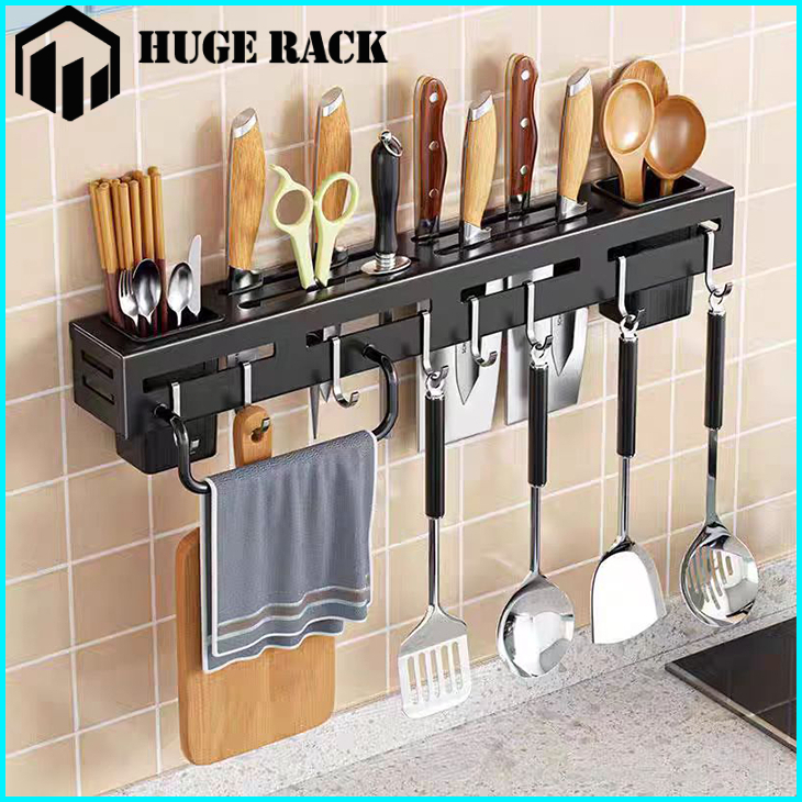 Rak Bumbu Dapur Dinding Rak Pisau Dinding Dapur Stainless Steel Tempat Taruh Sendok Garpu Pisau Dapur Gantungan Lap Dapu