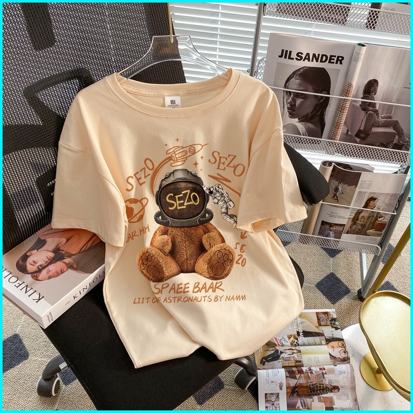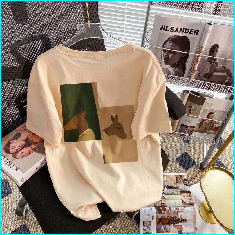 100 Katun Kaos Lengan Pendek Cream Atasan Wanita Oversize Printed T-shirt Kekinian Korean Style