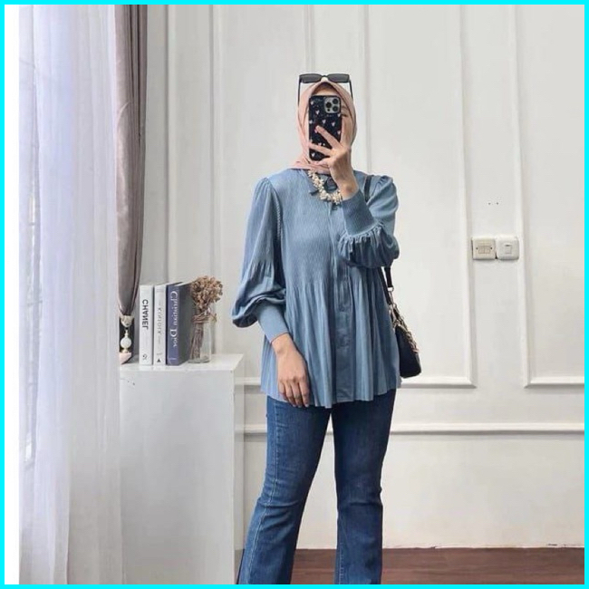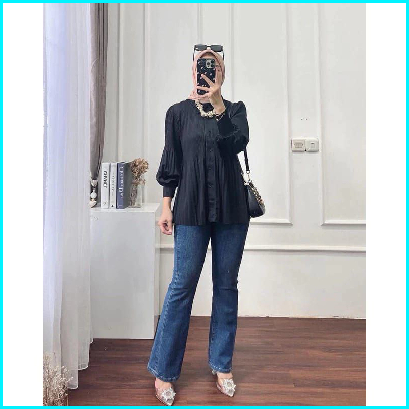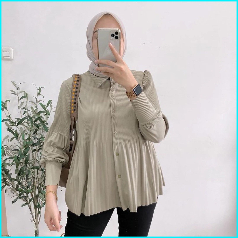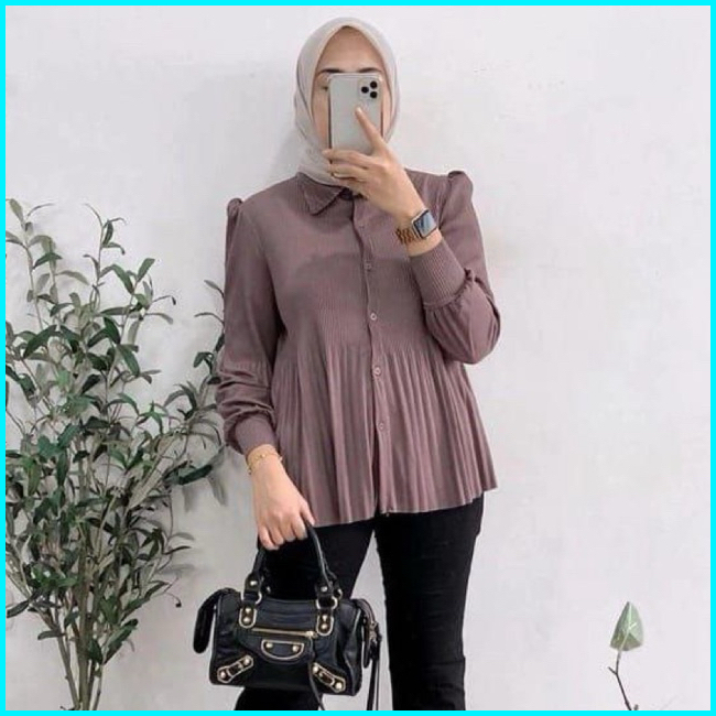 Atasan Wanita Terbaru Kemeja Plisket Tisya Blouse Kekinian