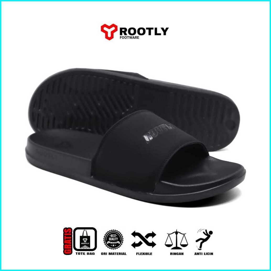 Rootly - Sandal Wanita Pria Dan Junior Debos Full Black Simple 33 - 44