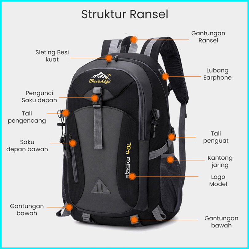 Highland Tas Ransel Pria Gunung 40l Tas Kuliah Sekolah Cowok Tas Punggung Backpack Anti Air Tr109