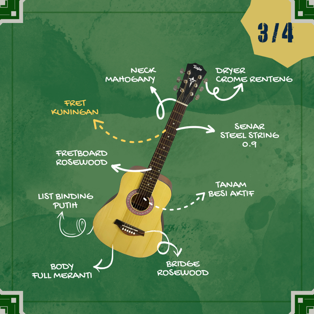 Gitar OPX Tylor 3/4 Custom Tanam Besi - Gitar Akustik Pemula Tanam Besi 3/4
