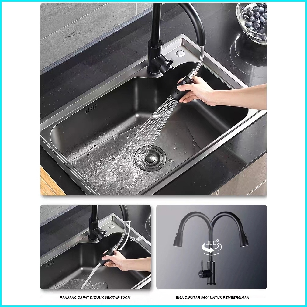 Kran Sink Mixer Tarik Stainless Sus 304 Hitam Kran Flexible Tarik Curi Piring Stainless Hitam Sus