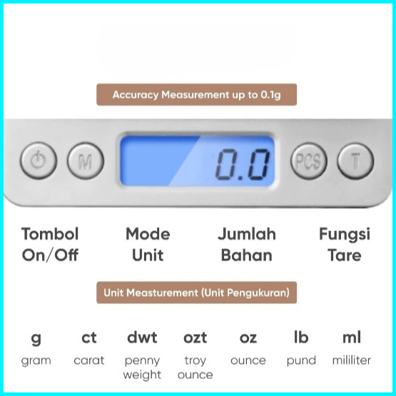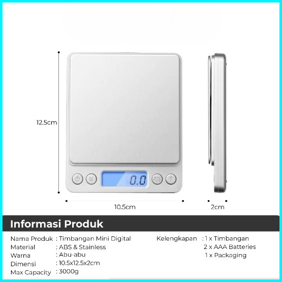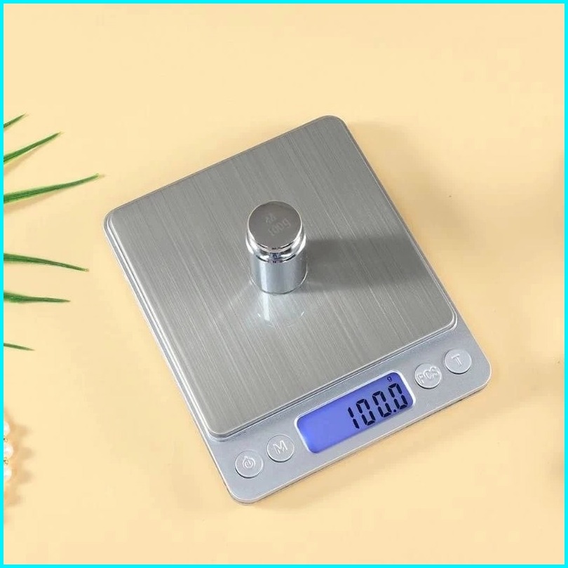 Timbangan Scale 3kg 0.1gr Kotak Digital Kopi Bumbu Dapur Platform Dengan Lampu Backlight Biru