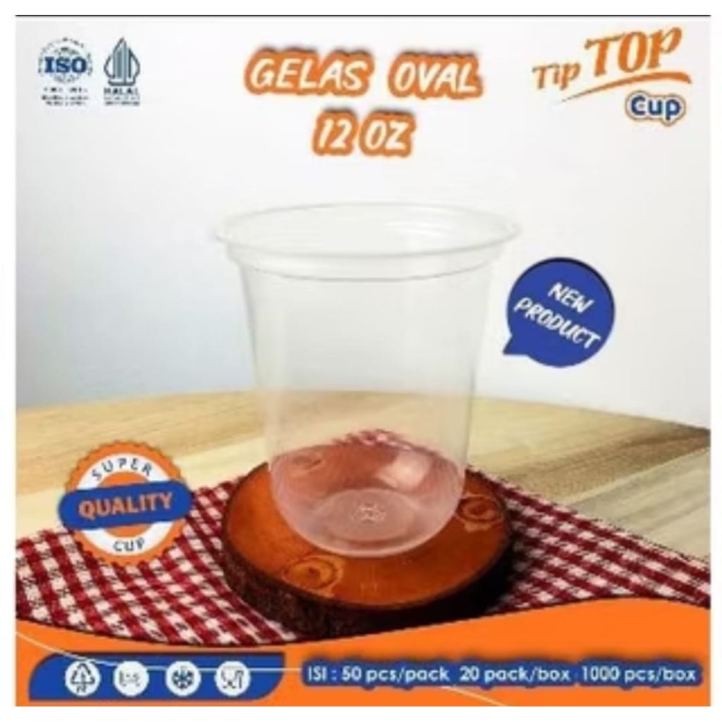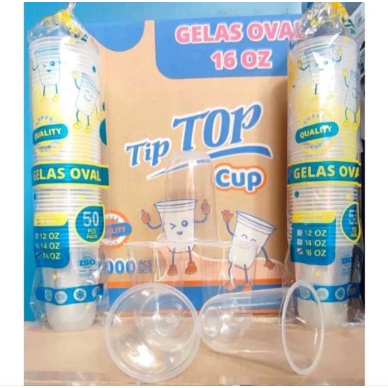 Gelas Plastik TIPTOP OVAL , 14oz, 16oz, 18oz & 22oz (PER DUS)